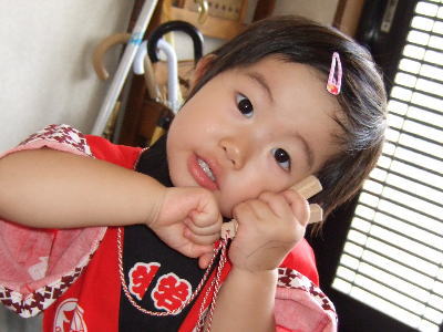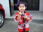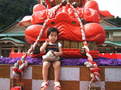 家の娘も神輿にのってポーズ!(ちょっと怖いのかカメラ目線になりません)